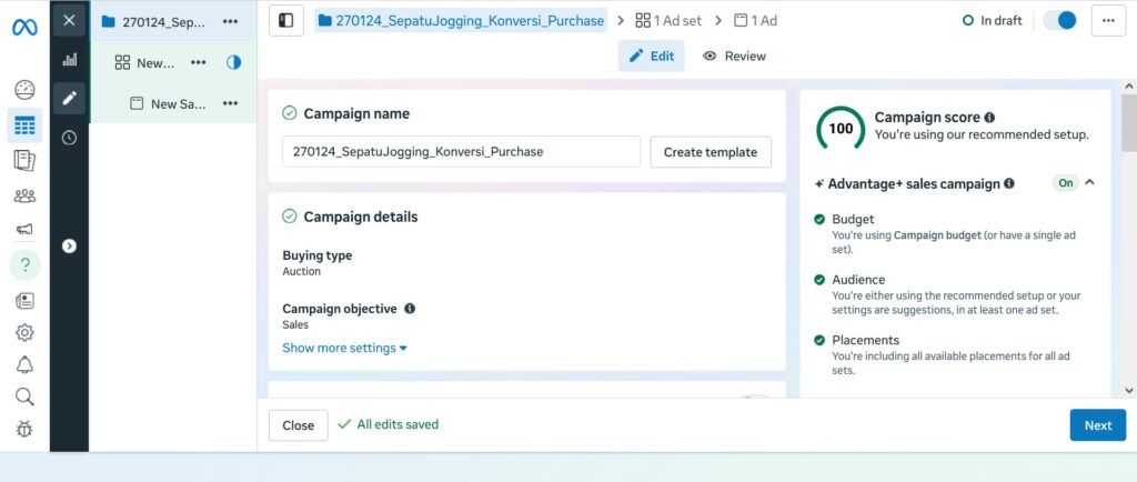 2. Berinama Kampanye dengan Sistem: Ini tips kecil yang crucial. Saya selalu gunakan format: Tanggal_Produk_Tujuan_Detail (Contoh:270124_SepatuJogging_Konversi_Purchase`). Ini memudahkan pelacakan nanti.